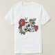 Camiseta crane fleur rose feuille tattoo tete de mort branc