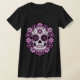 El cráneo de azúcar del Día de los Muertos en coloridos tonos de morado rodeado de flores.