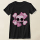 Calavera rosa y huesos cruzados con el corazón de los puntos de la polka y el arco. ¡Este lindo cráneo de ojos anchos es un diseño dulce que las mujeres adorarán!