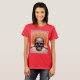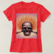Crea un cartel de rock and roll para un evento musical, con un cráneo estilizado y huesos cruzados en el fondo de encendidas llamas. con fondo de color claro para el diseño de camisetas
