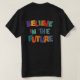 Este inspirador diseño de camisetas muestra la frase "Créanlo en el Futuro" en letras negrita y multicolores contra un fondo dinámico y abstracto. El diseño transmite un mensaje de esperanza, optimismo y poder de creencia. Alienta a los usuarios a adoptar una perspectiva positiva, a prever un futuro más brillante y a adoptar medidas para crear un mundo mejor.