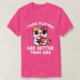 El color es muy bonito al natural, como la foto. El tejido es suave y de buena calidad. Sin defectos en el tintado, ni hilos sueltos o descosidos. Bien la impresión. Los bordes de las letras y el dibujo son nítidos, y el color contrasta muy bien con el de la camiseta.