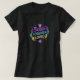 Camiseta cristiana, cruz gráfica de madera, color neón, estilo ilustracion, palabras: escogidas, perdonadas, amadas, en vibrantes y giratorias tonalidades neones de morado, verde, azul y amarillo, sobre un fondo blanco,