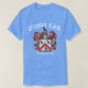 El color es muy bonito al natural, como la foto. El tejido es suave y de buena calidad. Sin defectos en el tintado, ni hilos sueltos o descosidos. Bien la impresión. Los bordes de las letras y el dibujo son nítidos, y el color contrasta muy bien con el de la camiseta.
