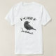 Se trata de un ilustracion monocromático de elaboración profesional, con un cuervo encaramado sobre una rama arbórea, representado con una textura distintiva de medio tono para evocar una estética vintage. El texto audaz y estilizado "F-CAW-F", situado en una posición prominente sobre el pájaro, ofrece un giro humorístico que complementa el ambiente gótico y potencialmente espeluznante o de Halloween del cuervo. La composición general combina elementos de estilo tatuado oscuro y vintage con un diseño retro gráfico.