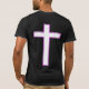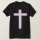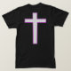 El gráfico de vector por CMYK diseña la atracción de una cruz blanca con el esquema púrpura en un fondo transparente. Para la ropa oscura solamente.