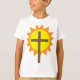 Una cruz contra un sol amarillo brillante. Este diseño se ve realmente efectivo en esta camiseta para niños