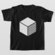 Una camiseta con un simple cubo geométrico con un lado sombreado de media tonalidad. Como un ilustracion de un viejo libro de matemáticas.