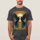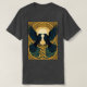 Dos cuervos se enfrentan en perfecta simetría, con alas levantadas en postura ceremonial bajo un disco celestial brillante. Sus picos casi tocándose y su plumaje en capas sugieren una tensión silenciosa, dualidad y una presencia mítica que une el cielo, el mar y el simbolismo.