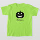 La camisa verde limón (puede ser modificada) de Halloween tiene un lindo gato blanco y negro espeluznante de calabaza de linternas y texto negro personalizado que se puede personalizar con el nombre de su hijo.