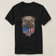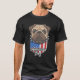 Pug americano lindo con Tees de fondo del Escudo de la Bandera de los Estados Unidos.