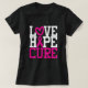 Love Hope Cure la camiseta de Cáncer de Mama para crear conciencia y apoyar a los que han luchado y a los que siguen luchando. El diseño presenta una cinta rosa y un bonito elemento cardíaco junto con una simple tipografía. El diseño puede ser personalizado para añadir texto, fecha o logotipo para hacer su propia camiseta personalizada. © TheDesignHippo