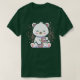 El color es muy bonito al natural, como la foto. El tejido es suave y de buena calidad. Sin defectos en el tintado, ni hilos sueltos o descosidos. Bien la impresión. Los bordes de las letras y el dibujo son nítidos, y el color contrasta muy bien con el de la camiseta.