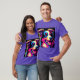 El color es muy bonito al natural, como la foto. El tejido es suave y de buena calidad. Sin defectos en el tintado, ni hilos sueltos o descosidos. Bien la impresión. Los bordes de las letras y el dibujo son nítidos, y el color contrasta muy bien con el de la camiseta.