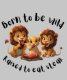 Esta capucha de camisa contiene un grupo de lindos cachorros de león sentados alrededor de comer carne con la frase "Nacido para ser salvaje, criado para comer carne". Es un diseño perfecto para tus pequeños carnívoros.