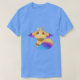 El color es muy bonito al natural, como la foto. El tejido es suave y de buena calidad. Sin defectos en el tintado, ni hilos sueltos o descosidos. Bien la impresión. Los bordes de las letras y el dibujo son nítidos, y el color contrasta muy bien con el de la camiseta.
