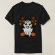 Get into the spooky spirit with this unique and adorable design! Our friendly little ghost is ready for a night of trick-or-treating, proudly wearing a set of majestic Deer Antlers decorated with carved Jack O'Lantern Pumpkins. Set against a glowing full moon and surrounded by bats, this design is the perfect blend of spooky and cute.