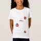 Camiseta blanca y negra con ladybugs rojos en acuarela.