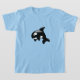 Adorable orca ballena de dibujos animados con un pequeño corazón blanco cerca de su cola.