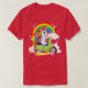 El color es muy bonito al natural, como la foto. El tejido es suave y de buena calidad. Sin defectos en el tintado, ni hilos sueltos o descosidos. Bien la impresión. Los bordes de las letras y el dibujo son nítidos, y el color contrasta muy bien con el de la camiseta.