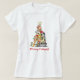 Camiseta personalizado con un adorable ilustracion de nueve gatos formando un árbol de Navidad con luces, una estrella en la parte superior y las palabras "¡Meowy Catmas!"