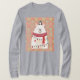 My original artwork is featured on this fun holiday party t-shirt, consisting of a cute graphic art polar bear with a penguin on its head and Christmas lights around it, on a peach patterned background and placed on a light gray shirt. This is a basic shirt; however, you may change it to any other shirt, if desired. This particular shirt is an adult Large and also may be changed to your preference. Fun holiday art for any seasonal parties or casual Fridays at work.