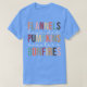 El color es muy bonito al natural, como la foto. El tejido es suave y de buena calidad. Sin defectos en el tintado, ni hilos sueltos o descosidos. Bien la impresión. Los bordes de las letras y el dibujo son nítidos, y el color contrasta muy bien con el de la camiseta.