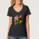 Camiseta con cuello en V de mujer, Negro, XL de adulto