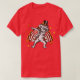 El color es muy bonito al natural, como la foto. El tejido es suave y de buena calidad. Sin defectos en el tintado, ni hilos sueltos o descosidos. Bien la impresión. Los bordes de las letras y el dibujo son nítidos, y el color contrasta muy bien con el de la camiseta.