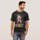 El color es muy bonito al natural, como la foto. El tejido es suave y de buena calidad. Sin defectos en el tintado, ni hilos sueltos o descosidos. Bien la impresión. Los bordes de las letras y el dibujo son nítidos, y el color contrasta muy bien con el de la camiseta.