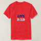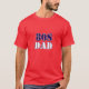 La camiseta de papá de los 80 es de color rojo con tinta azul oscuro y blanca. Es para un papá que puede usarlo en el día del padre o en cualquier ocasión.