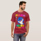 El color es muy bonito al natural, como la foto. El tejido es suave y de buena calidad. Sin defectos en el tintado, ni hilos sueltos o descosidos. Bien la impresión. Los bordes de las letras y el dibujo son nítidos, y el color contrasta muy bien con el de la camiseta.
