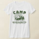Camiseta de campamento de soltera verde y blanca para tus damas de honor. Diseño con la cita "último sendero antes del velo", montañas, un bosque y una tienda de campaña.