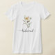 Elegante y con estilo, esta hermosa camiseta de dama de honor floral presenta impresionantes flores silvestres vintage delicadas y prensadas, pintadas a mano en acuarela en rosa blush, azul polvoriento y amarillo, con elementos botánicos en verde salvia dispuestos en un hermoso ramo. Encuentre productos coincidentes en la colección Elegante ducha de novia de flores silvestres en acuarela pastel.