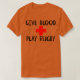 El color es muy bonito al natural, como la foto. El tejido es suave y de buena calidad. Sin defectos en el tintado, ni hilos sueltos o descosidos. Bien la impresión. Los bordes de las letras y el dibujo son nítidos, y el color contrasta muy bien con el de la camiseta.