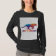 This high-performance t-shirt design features a sleek, multi-colored cheetah mid-stride, perfectly capturing the concept of explosive speed. The illustration uses a striking gradient of electric blue, sunset orange, and deep magenta, accented by sharp horizontal speed lines that create a sense of rapid forward motion.