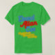 El color es muy bonito al natural, como la foto. El tejido es suave y de buena calidad. Sin defectos en el tintado, ni hilos sueltos o descosidos. Bien la impresión. Los bordes de las letras y el dibujo son nítidos, y el color contrasta muy bien con el de la camiseta.