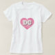 Esta camiseta tiene un corazón tranquilo y fresco de color rosa con un centro blanco lavado que contiene las letras negrita blanca y alta del funda DC, la abreviatura oficial del Distrito de Columbia.