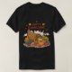 Una vibrante camiseta del Día de Acción de Gracias con un juguetón con una pancarta "Thankful & Blessed", rodeada de coloridas hojas de otoño, calabazas y elementos de cornucopia. El diseño irradia calidez con ricos tonos de naranja, rojo y oro, que encapsulan el espíritu festivo de gratitud y unión.