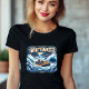 El color es muy bonito al natural, como la foto. El tejido es suave y de buena calidad. Sin defectos en el tintado, ni hilos sueltos o descosidos. Bien la impresión. Los bordes de las letras y el dibujo son nítidos, y el color contrasta muy bien con el de la camiseta.