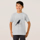 Esta es una camiseta de un niño Personalizable con una imagen de un pájaro negro hecho a lápiz de color.