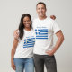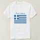 Una camiseta con la bandera griega y "Hecho en Grecia" escrita en la parte superior con una letra de apariencia griega. Puede editar el color del 'texto' (actualmente establecido en el mismo azul que las franjas de la bandera)