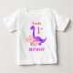 Una linda camiseta de dinosaurio bebé personalizado de primer cumpleaños con dinosaurios prehistóricos del periodo Jurásico en colores brillantes de rosa y morado. Con un Triceratops y un Brontosaurus . Un diseño lindo para alguien que tendrá un año. Añada el nombre y la edad de la niña al frente de la camiseta para que la personalizar de esa niña especial haga de esto un regalo extra especial.