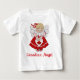 Ángel dulce con un vestido rojo y blanco mientras sostiene un corazón blanco con una hoja de arce roja en el medio. El texto dice Ángel Canadiense.