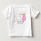 "Introduce your little one in style with this adorable 'Hello World, I'm Sebastian' personalized baby t-shirt! Featuring a charming illustration of a classic stork carrying a pink polka-dot bundle with a heart, this shirt is the perfect way to share your big news with family and friends.