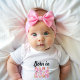 The elegant design features a sign with the phrase "Born in 2024." The "born in" portion of the text is crafted in an elegant black cursive font, giving it a classic and sophisticated feel. The number "2024" stands out with fun pink letters, full of small children's drawings of babies in fun positions. This design is perfect to celebrate the birth of a baby in 2024, combining style and cuteness in a unique and memorable garment.