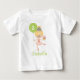 Nuestros adorables camisetas de cumpleaños pueden ser personalizados con la edad del chica de cumpleaños en el globo y personalizados con su nombre debajo. Una bailarina salta por el aire usando una tiara y un tutu rosado y un leotardo con un quequito en una mano y un globo en la otra. Pintura © Chrissy H. Studios, LLC. Todos Los Derechos Reservados.