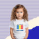 Bandera pixelada aislada de Rumania con el texto: Azul. Amarilla. Roja. Rumano por siempre