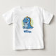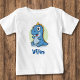 Esta camiseta personalizada y encantadora para niños presenta un dibujo animado de un dinosaurio azul bebé con ojos grandes y expresivos y una sonrisa alegre.