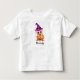 Esta camiseta de Halloween presenta una adorable lechuza bebé detrás de una calabaza, con el gorra de una bruja. La camiseta puede personalizarse con el nombre de su hijo.